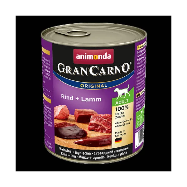 A kutya köztudottan a farkas leszármazottja. Tizenötezer emberek oldalán töltött év alatt a kutyák jelleme és kinézete rendkívüli változáson ment keresztül. Ezzel ellentétben a táplálkozási szokásaik és igényük a friss állati eredetű nyersanyagokra változatlan maradt. A GranCarno kutyaeledel kizárólag friss húsfélékből készül, mint a szív, tüdő, színhús és máj. Minden termék a legkorszerűbb tudományos ismereteket felhasználva készült, figyelembe véve a különböző kutyafajtákat és igényeket, megfelelően táplálva a kutyákat: természetesen, tisztán, mesterséges színezékek, ízesítők és tartósítószerek nélkül. A GranCarno Adult természetes, kutyáknak készült táplálék felnőtt kutyák számára, kiegészítve létfontosságú ásványi anyagokkal és vitaminokkal.
