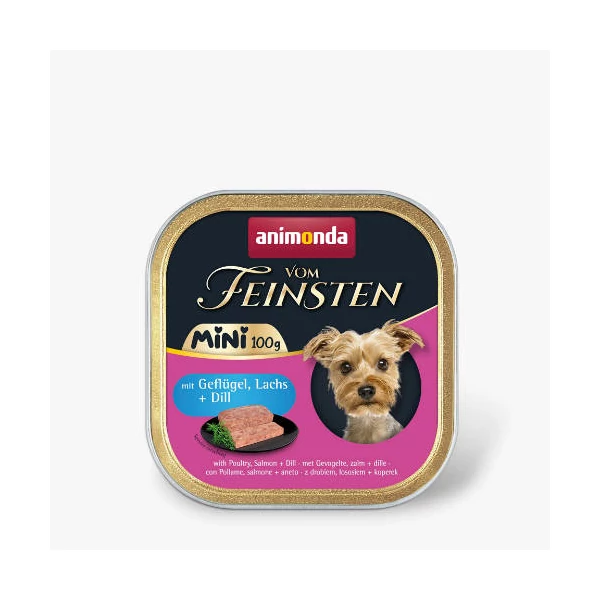 Animonda Vom Feinsten Adult Mini mit Geflügel, Lachs + Dill (baromfi,lazac,kapor) alutálkás - felnőtt kutyák részére (100g)