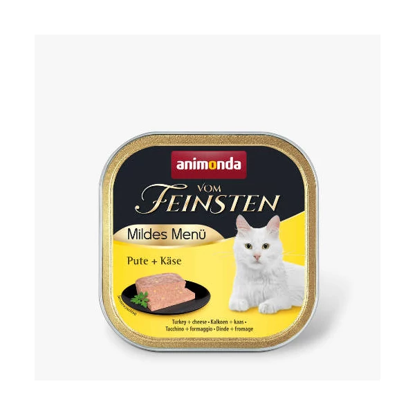 A Vom Feinsten Adult Mild Menu a kiegyensúlyozott, ízletes, egészséges táplálkozást jelenti a legmagasabb szinten 1-6 éves felnőtt macskák számára. A kizárólag jól emészthető pulykahúsból készült finom receptek – belsőségek és máj nélkül – különleges csemegét kínálnak a macskáknak. A finomra vágott pástétomok minden létfontosságú tápanyaggal ellátják a felnőtt macskát.