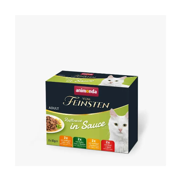 A praktikus Variety Pack Vom Feinsten Raffinesse mártásban,változatosságot biztosít a mindennapokon, négyféle ízletes ízzel. A finom húsdarabok ínycsiklandó szószban nem csak az 1-6 éves felnőtt macskákat biztosítják az összes szükséges tápanyaggal, hanem garantálják a kiváló kulináris élményt is.