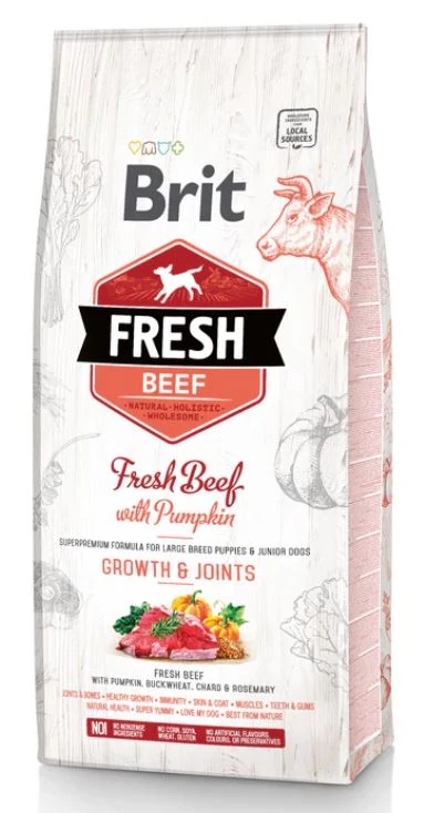 Friss marhahús (40%), szárított marha (25%), sütőtök (10%), csirkezsír (tokoferol keverékkel tartósítva), zab, hajdina (5%), alma, egész cukorrépa, lazac olaj, sörélesztő, lenmag, csirkemáj, kollagén, algák, mángold (0,2%), petrezselyem, rozmaring (0,05%), kakukkfű, körömvirág, gyermekláncfű, probiotikumok (Enterococcus faecium 1x109 CFU), glükózamin 1700 mg/kg, kondroitin-szulfát 1,300 mg/kg, frukto-oligoszacharidok 220 mg/kg, béta-glükán 200 mg/kg, mannán-oligoszacharidok 180 mg/kg, jukka 150 mg/kg, zöldkagyló 100 mg/kg.