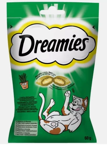A Dreamies™ egy csipetnyi macskamentával finom ropogós pogácsák lágy töltelékkel, 8 hetesnél idősebb macskáknak. Ezeket a WALTHAM™ Animal Nutrition Center dietetikusai és állatorvosai fejlesztették ki. Kiváló ízűek, és a vitaminok és ásványi anyagok jelenlétének köszönhetően támogatják macskája egészségét és vitalitását.