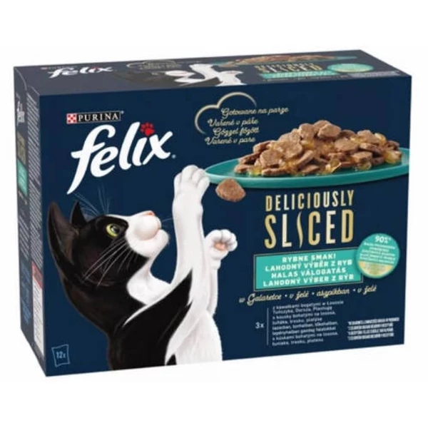 Felix DELICIOUSLY SLICED Halas válogatás aszpikban nedves macskaeledel 12x80g