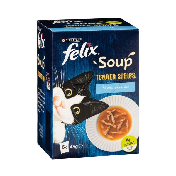 FELIX Soup Tender strips - nedves eledel (halas válogatás, szósz) macskák részére (6x48g)