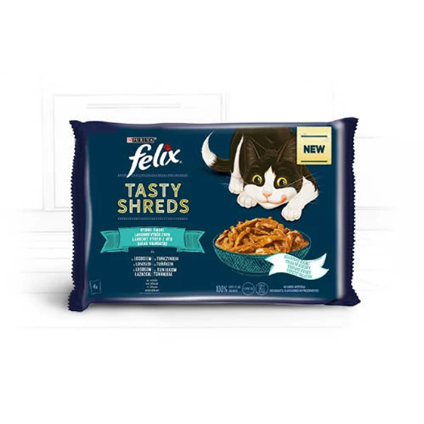 Felix Tasty Shreds (halas - szószban) alutasakos - macskák részére (4x80g) Akció: 11. hó