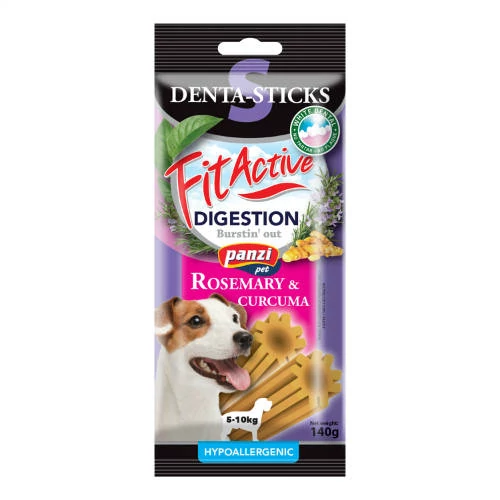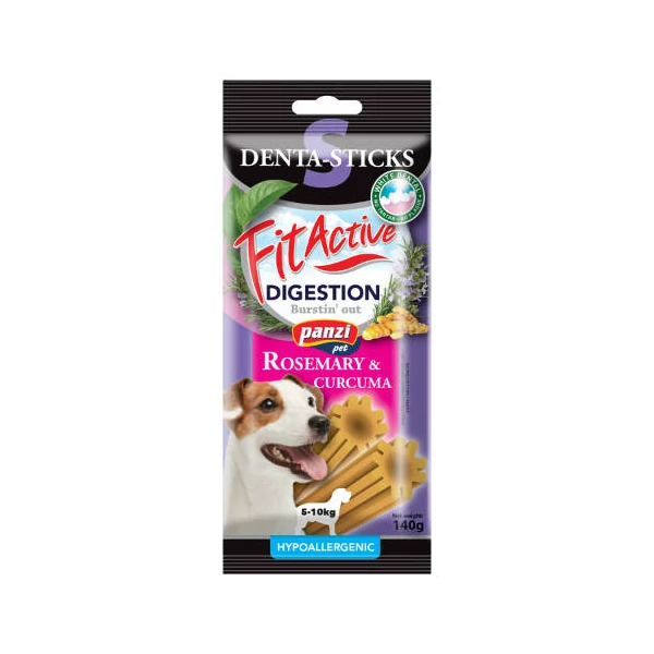 A FitActive Denta-Sticks Rosemary & Curcuma nemcsak segítheti a fogkő kialakulásának megelőzésében, de gyógynövényes összetétele révén az emésztést is támogathatja – ideális választás lehet egészségtudatos gazdiknak.