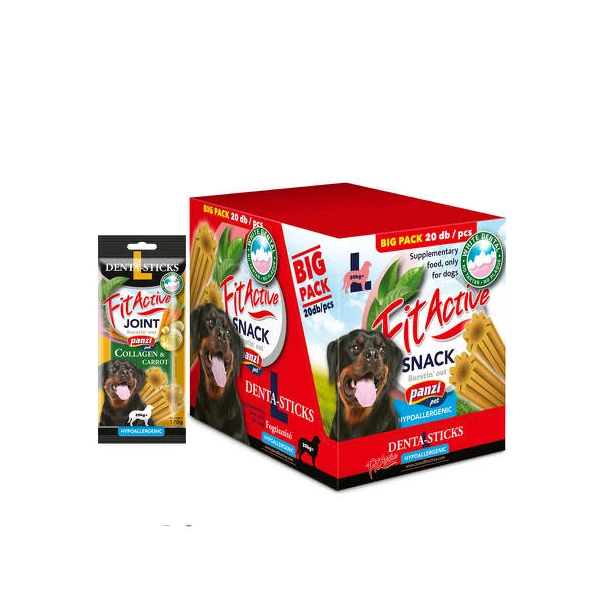 A FitActive Denta-Sticks Collagen & Carrot nemcsak a fogkő kialakulásának megelőzésében segíthet, hanem kollagén- és zöldségtartalma révén az ízületek és az emésztés egészségét is támogathatja.
