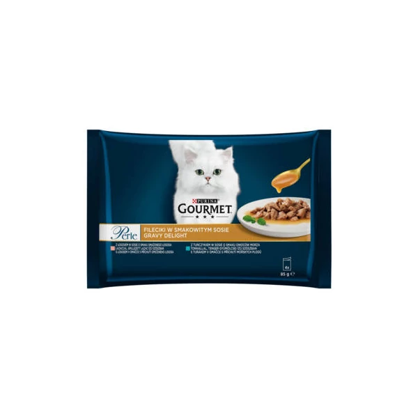 Gourmet Perle Gravy Delight falatok szószban (lazaccal és tonhallal) nedvestáp - macskák részére (4x85g)