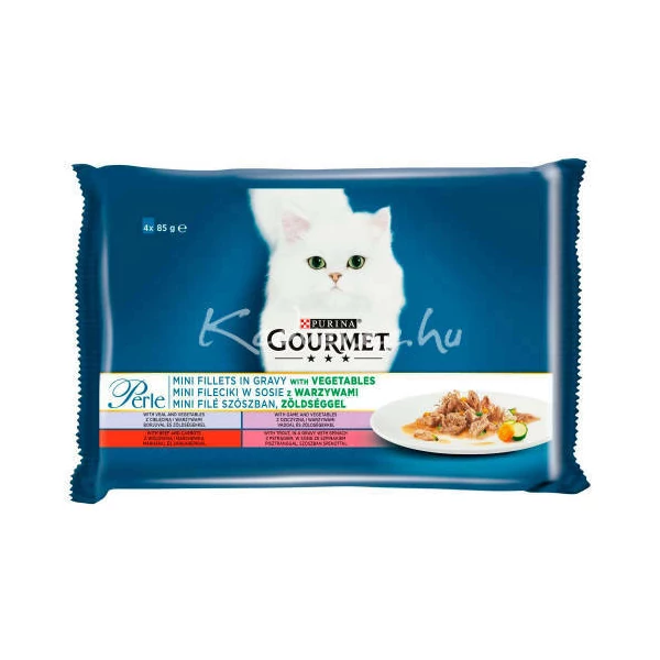 Gourmet Perle Mini file falatok szószban (borjú,vad,marha,pisztráng) nedvestáp - macskák részére (4x85g)