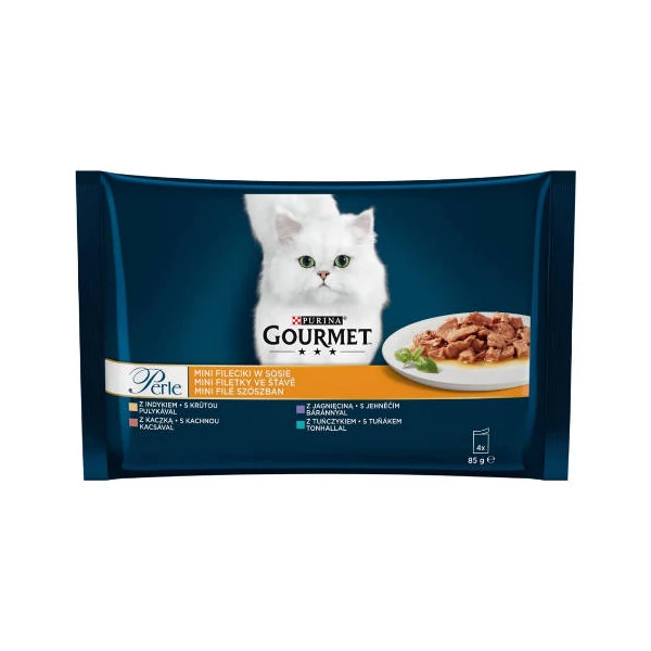 GOURMET PERLE Mini filé pulykával/tonhallal/kacsával/báránnyal nedves macskaeledel (4x85g)