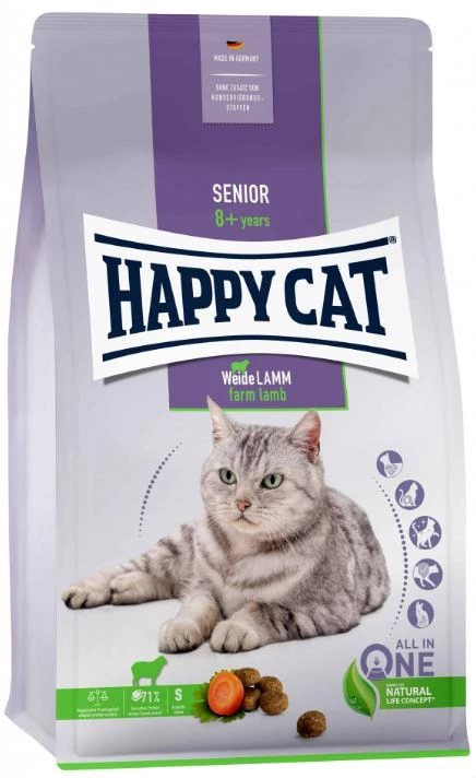 A Happy Cat Best Age 10+ igen ízletes eledel, motiválja idős macskáját (aki már minden bizonnyal kevesebb táplálékot vesz magához) az evésre. Hosszú szőrű és érzékeny macskáknak is adható.