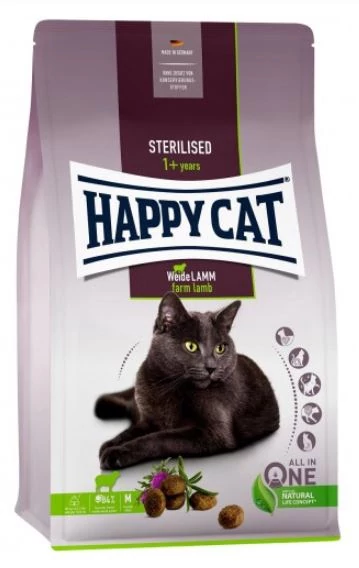 A Happy Cat Sterilised Weide-Lamm (bárány) kifejezetten az érzékeny, felnőtt macskák számára lett kifejlesztve, akiknek ivartalanítás után kiváló, tápláló eledelre van szükségük.