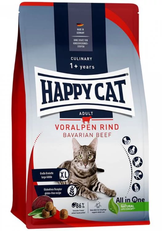 A Happy Cat Voralpen-Rind macskaeledellel olyan ízvilágot kínálunk macskájának, amely kiváló minőségben tartalmazza a szükséges összetevőket, szabadtartásból származó-alpesi marhát,valamint ízletes baromfit, továbbá a Natural Life Concept-nek köszönhetően értékes gyógynövényeket.