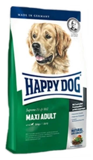 A Happy Dog Maxi Adult 5 kiváló minőségű, könnyen emészthető fehérje-összetevőt és 12% zsírt tartalmaz minőségi állati és növényi eredetű, létfontosságú telítetlen omega-3 és omega-6 zsírsavakkal.