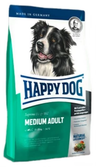 A Happy Dog Medium Adult 5 kiváló minőségű, könnyen emészthető fehérje-összetevőt és ezzel arányosan 12% zsírt tartalmaz minőségi állati és növényi forrásokból származó létfontosságú telítetlen omega-3 és omega-6 zsírsavakkal.