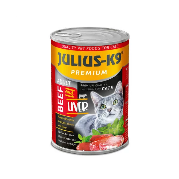 JULIUS - K9 macska - nedveseledel (marha-máj) felnőtt macskák részére (415g)