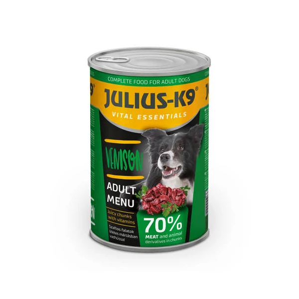 A JULIUS-K9 Venison egy prémium minőségű kutyakonzerv, mely ízletes szarvashússal és gazdag mártással kényezteti kedvencét – tökéletes választás lehet a természetes húsízek kedvelőinek.