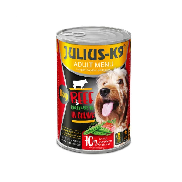 Julius-K9 konzerv Adult - nedveseledel (marha,borsó) felnőtt kutyák részére (1240g)