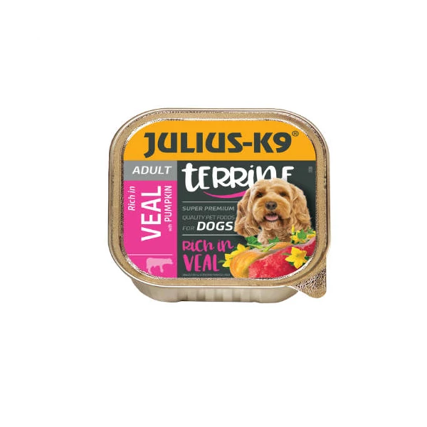 Összetétel: Hús és állati származékok 53 % (20% borjú), zöldségek (4% sütőtök), ásványi anyagok.