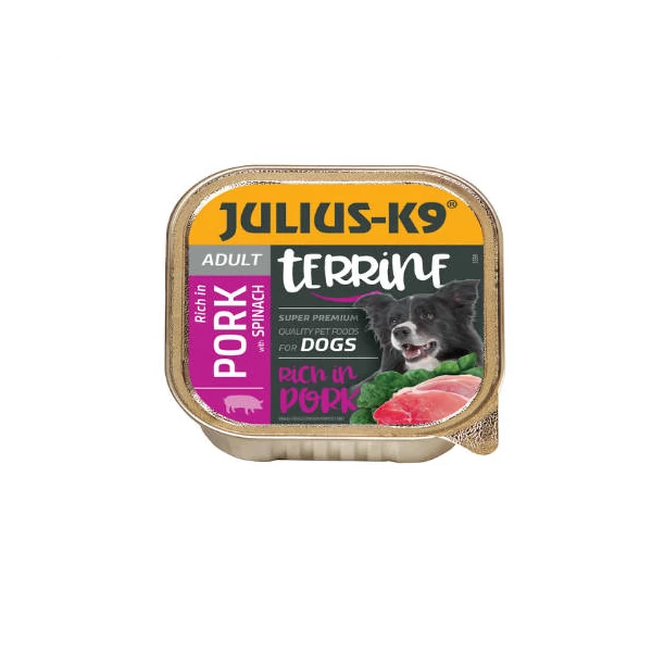 Összetétel: Hús és állati származékok 54 % (20% sertés), zöldségek (4% spenót), ásványi anyagok.