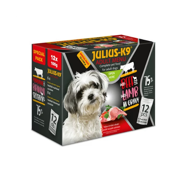 JULIUS-K9 Adult Menu Beef & Lamb (marha & bárány) – Nedves eledel válogatás felnőtt kutyáknak (12x100g)
