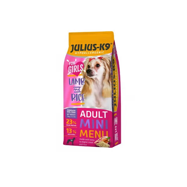 Julius-K9 Mini For Girls hipoallergén száraztáp kistestű felnőtt kutyáknak – bárány & rizs
