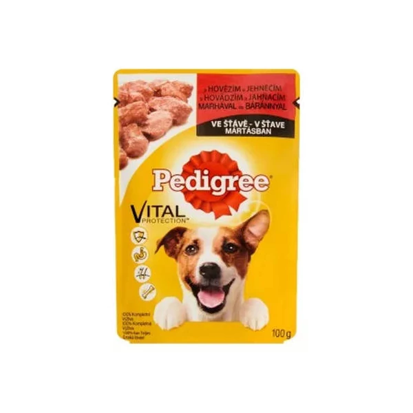- Pedigree teljes értékű nedves eledel felnőtt kutyák részére marha, bárány keverékével mártásban