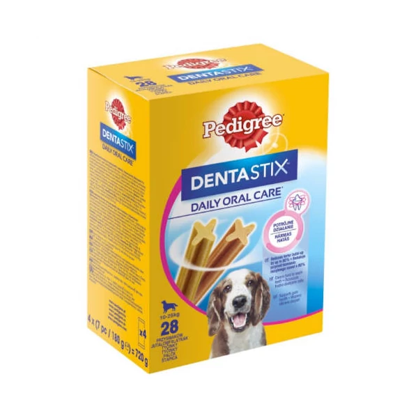 Pedigree DentaStix 10-25kg - jutalomfalat (fogtisztító) Közepes testű kutyák részére 4x (7db/180g)