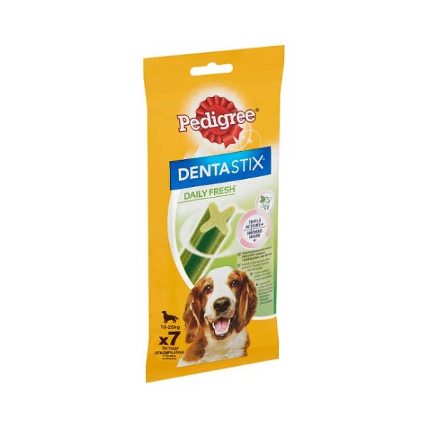 Pedigree DentaStix Daily Fresh 10-25kg - jutalomfalat (fogtisztító, zöld tea-eukaliptuszolaj) Közepes testű kutyák részére (7db/180g)