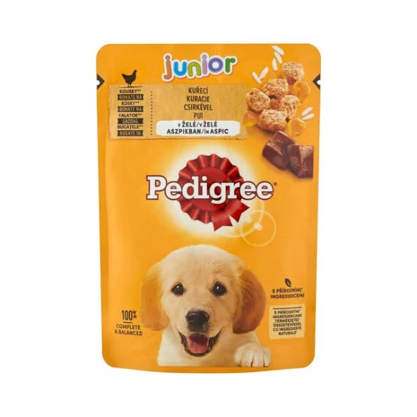 - Pedigree teljes értékű nedves eledel kölyökkutyák részére csirkével aszpikban.