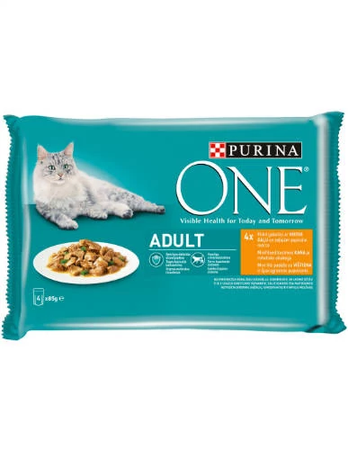 Purina ONE Adult - nedves eledel (csirke,zöldbab) macskák részére (4x85g)