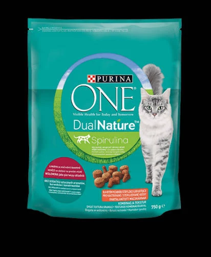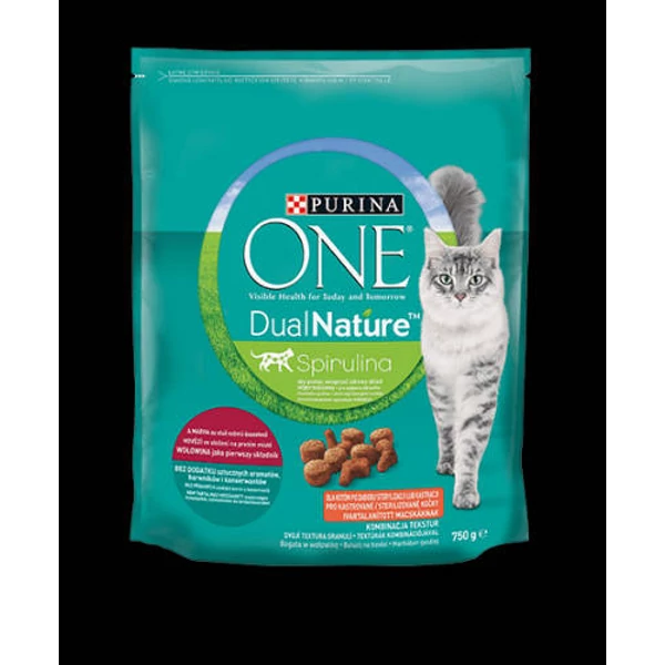 Purina ONE Dual Nature Sterilcat - (Marha, spirulina) száraztáp felnőtt macskák részére (750g)