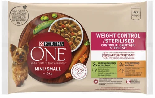 A Purina ONE MINI WEIGHT CONTROL nedves kutyaeledel pulykával és csirkével teljes értékű állateledel mini és kistestű felnőtt kutyák számára <10 kg