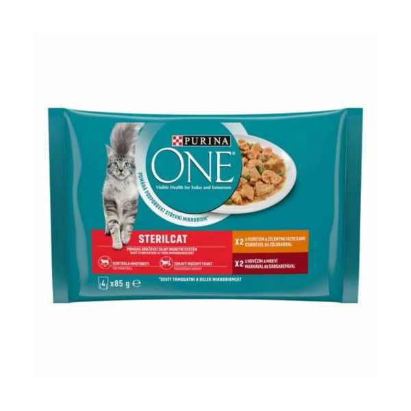 Purina ONE Sterilcat - nedves eledel (csirke, zöldbab - marha, sárgarépa) macskák részére (4x85g)