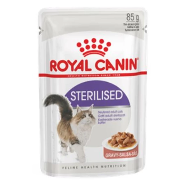 Teljes értékű táp ivartalanított, felnőtt macskák részére (vékony szeletek pecsenyelében).