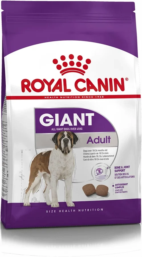 A Royal Canin Giant Adult egy teljes értékű táp felnőtt kutyáknak, óriástestű fajták számára (45 kg vagy feletti felnőttkori testtömeg) - 18/24 hónapos kortól.