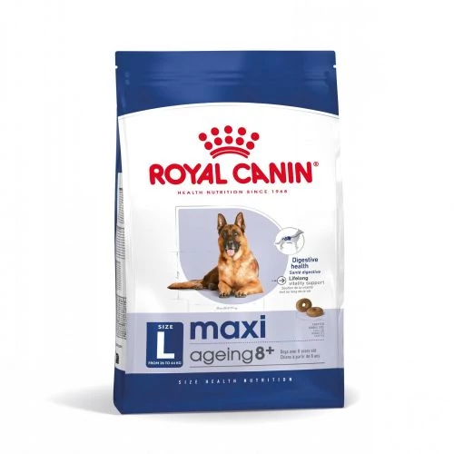 A Royal Canin Maxi Ageing 8+ (Mature) egy teljes értékű táp idősödő kutyáknak, nagytestű fajták számára (26 és 44 kg közötti felnőttkori testtömeg) - 8 éves kortól.