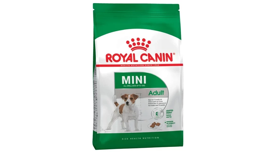 A Royal Canin Mini Adult egy teljes értékű táp felnőtt kutyáknak, kistestű fajták számára (10 kg vagy alatti felnőttkori testtömeg) - 10 hónapos kortól.