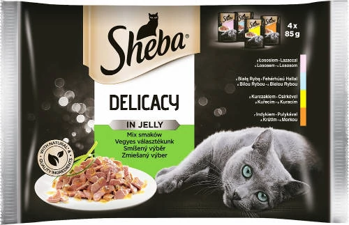 Sheba Delicacy in Jelly - alutasakos (lazac,csirke,pulyka, fehér hal) nedves eledel macskák részére (4x85g)