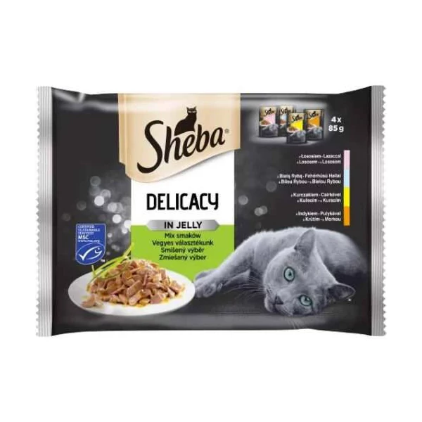 Isteni olvadó zselébe gondosan csomagolt finom darabok. Ízletes mindennapi kulináris élvezet, amely gyorsan kedvencévé válik. Finom pelyhekből készült nedves macskaeledel, amelyet minden falatban élvezni fognak. Praktikus újrahasznosítható 85 g-os SHEBA® macskaeledel-csomagolásban kapható.