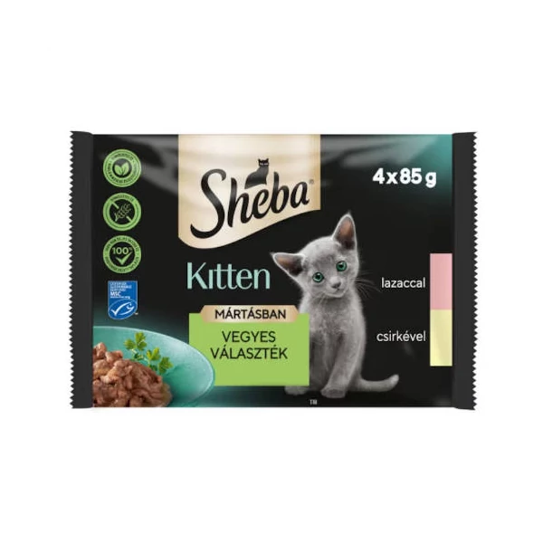 Sheba Kitten Selectie Mix - alutasakos mártásban (lazac,csirke) kölyökmacskák részére (4x85g)