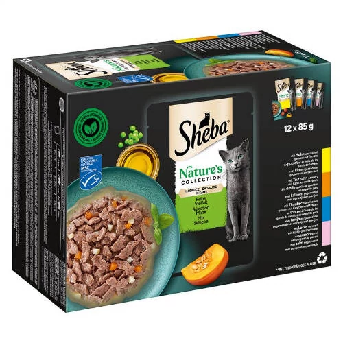Sheba Nature's Collection Selectie Mix - alutasakos (csirke,pulyka,tonhal,lazac mártásban) macskák részére (12x85g)