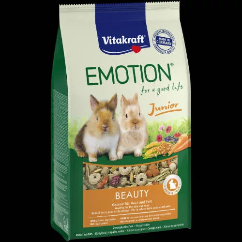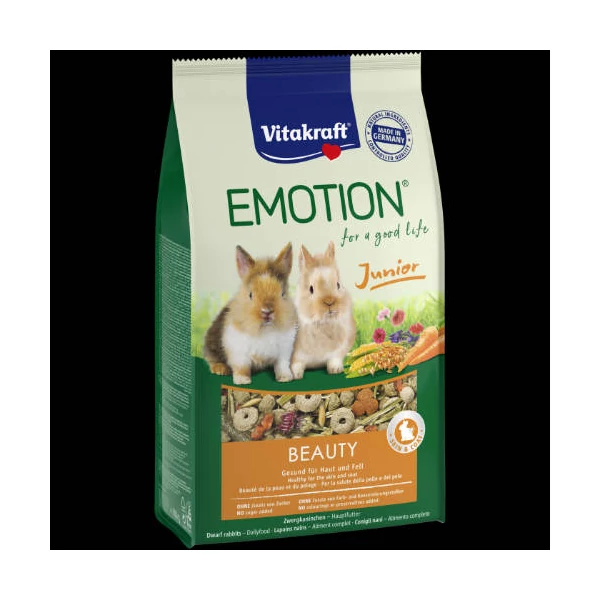 Vitakraft EMOTION Beauty Junior Rabbit - Teljesértékű eledel (egészséges bőr,szőr) fiatal nyulak részére (600g)