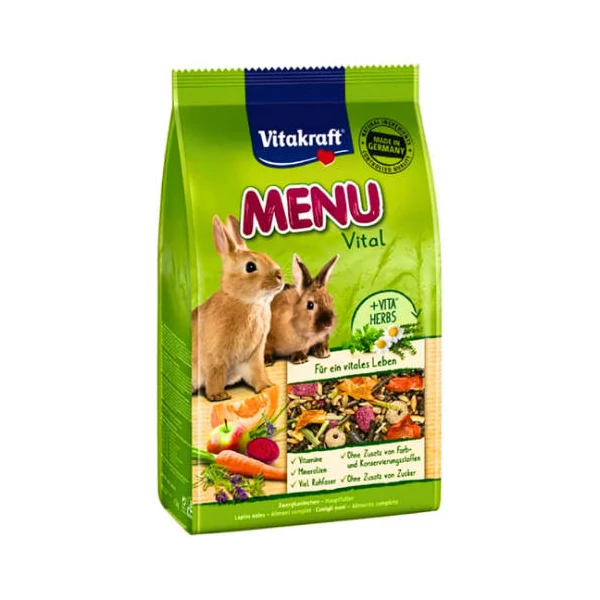 A Vitakraft Menu teljes értékű nyúltáp gondosan válogatott összetevőkkel biztosíthatja a törpenyulak mindennapi tápanyagellátását.
