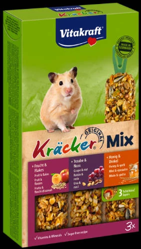 Vitakraft Kracker Dupla Rúd (méz,gyümölcs,mogyoró) – kiegészítő eleség Aranyhörcsög részére (168g)