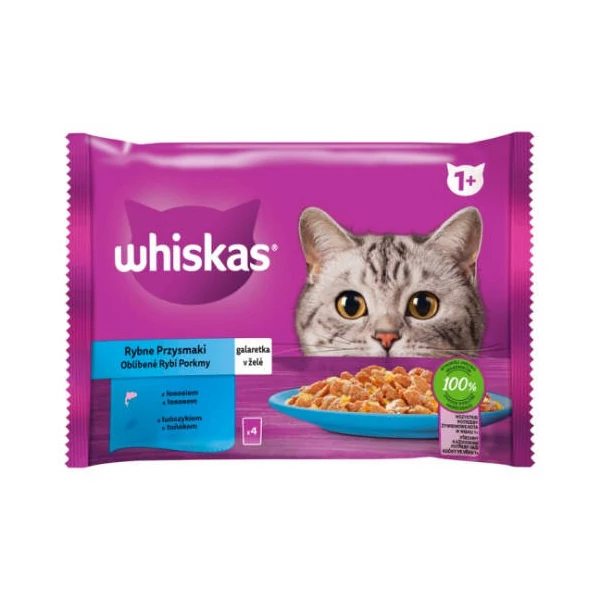 Whiskas Adult Popular Fish – Nedves eledel (lazac, tonhal, aszpikban) macskák részére (4x85g)