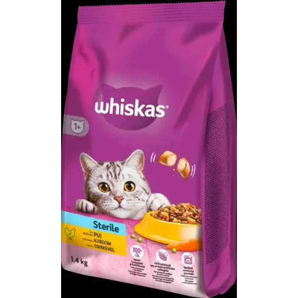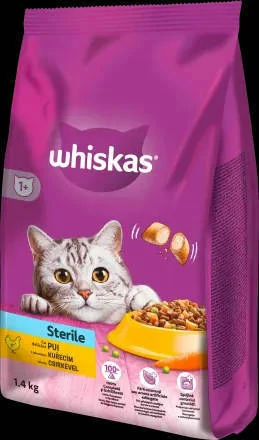 Whiskas Adult Sterile Chicken +1 - Szárazeledel (csirkehússal) felnőtt macskák részére (1,4kg)