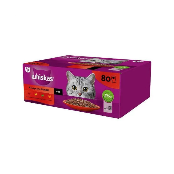 Whiskas Classic Meals 1+ - Nedves eledel (marha-,csirke-,bárány-, baromfi-, szószban) macskák részére (80x85g)