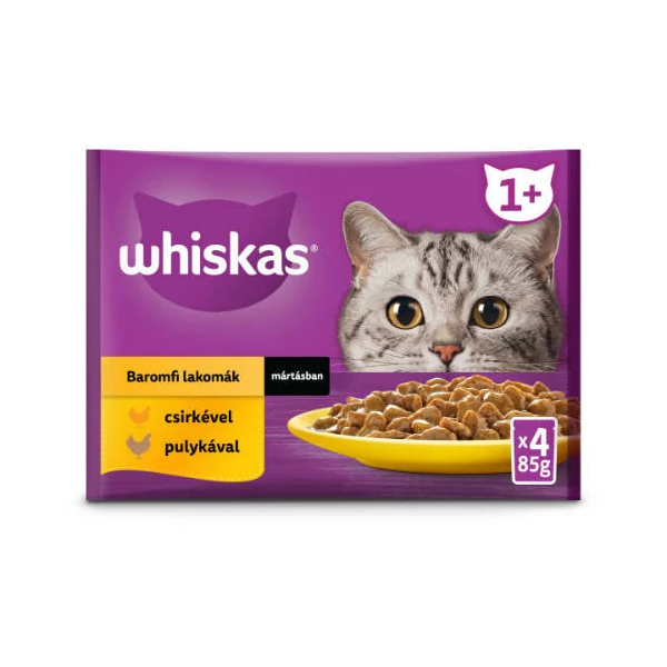 Whiskas Poultry feasts – Nedves eledel (csirke-, pulyka-, szószban ) macskák részére (4x85g)