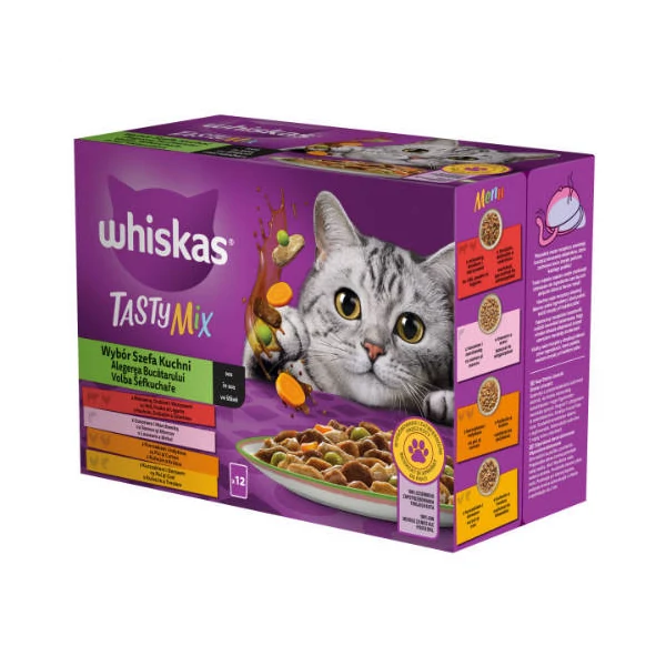Whiskas Adult TastyMix "A Séf Választása" - mártásban - alutasakos (marha,baromfi,zöldség,lazac,sárgarépa) felnőtt macskák részére (12x85g)